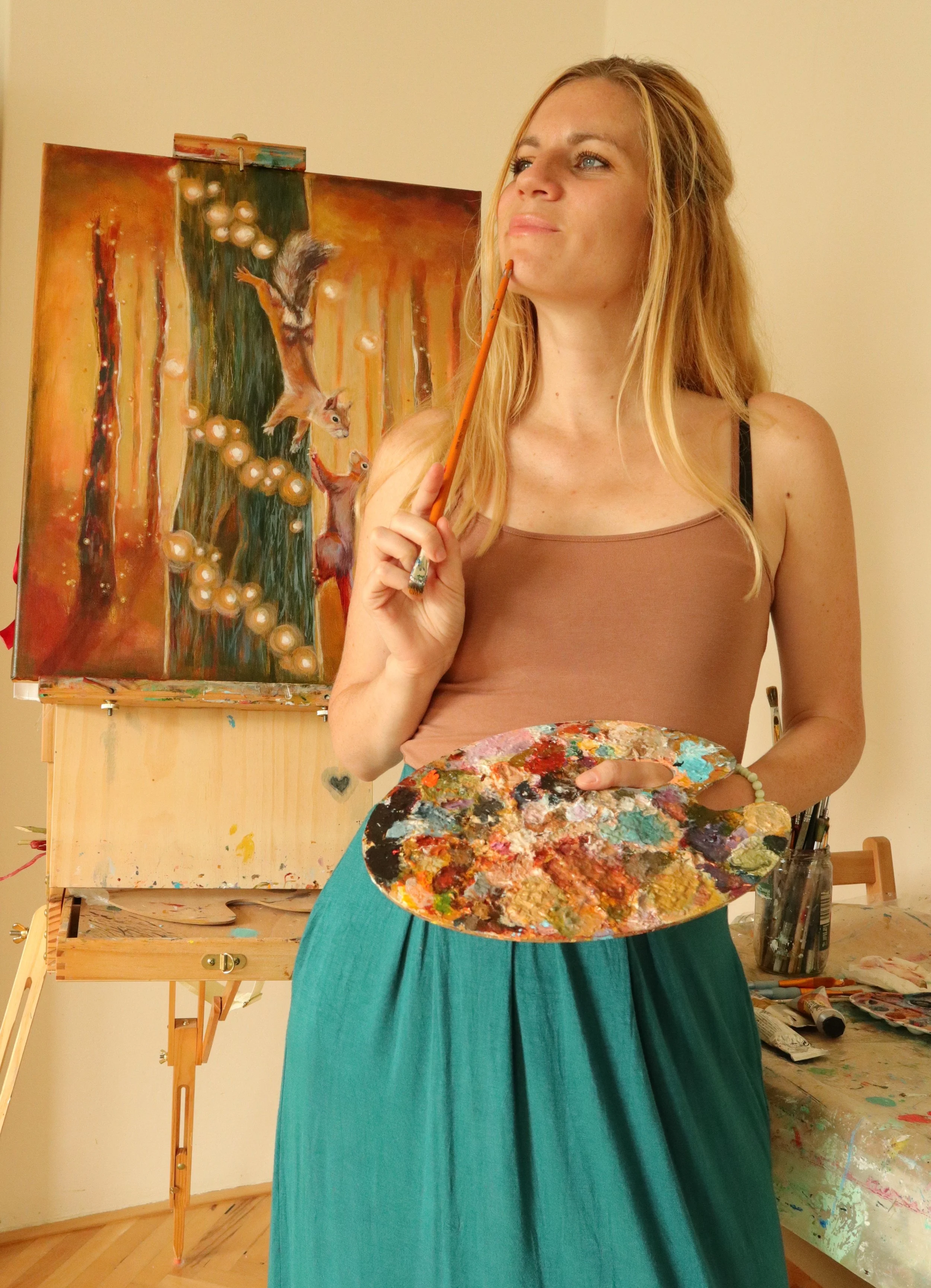 Inspiraci pro většinu mých obrazů nacházím s pomocí mé fantazie v prvotních vrstvách malby.  V těchto prvních vrstvách, šmouhách nacházím tvary, postavy, příběh. Často maluji malou dívku, která věřím, že je mým vnitřním dítětem. Ráda také maluji zvířata. Oceňuji jejich čistou, přirozenou podstatu. Postavy ožívají v mých vlastních fantazijních krajinách a snech.